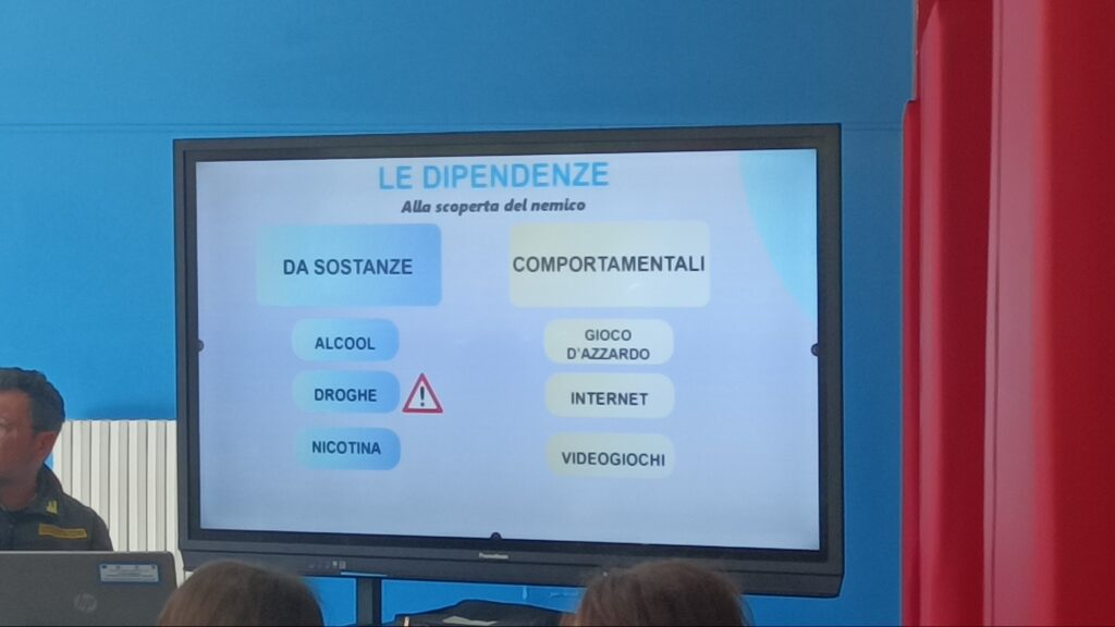 Durante l’incontro, gli esperti del Gruppo Operativo Antidroga hanno guidato gli studenti in una riflessione approfondita sulla definizione di droga, spiegando come queste sostanze agiscano sul cervello e sull’organismo. È stato affrontato anche il concetto di dipendenza, descritto come un vero e proprio “sequestro del cervello”, in cui la persona perde progressivamente il controllo delle proprie scelte.