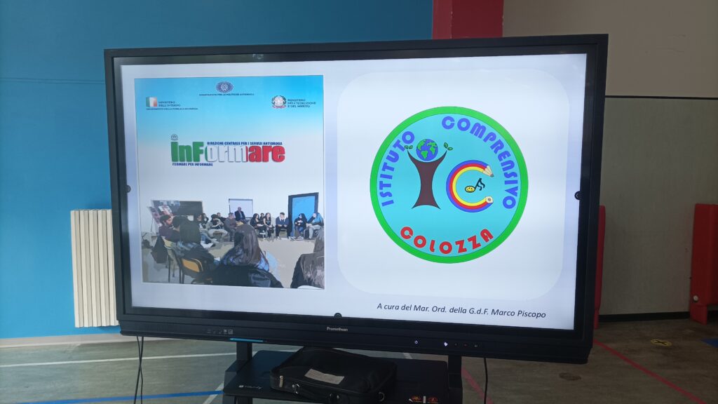 Oggi, nell’aula multifunzionale della scuola, le classi terze della scuola secondaria di primo grado hanno partecipato a un significativo incontro con la Guardia di Finanza, dedicato al tema della legalità e della prevenzione del traffico di sostanze stupefacenti.